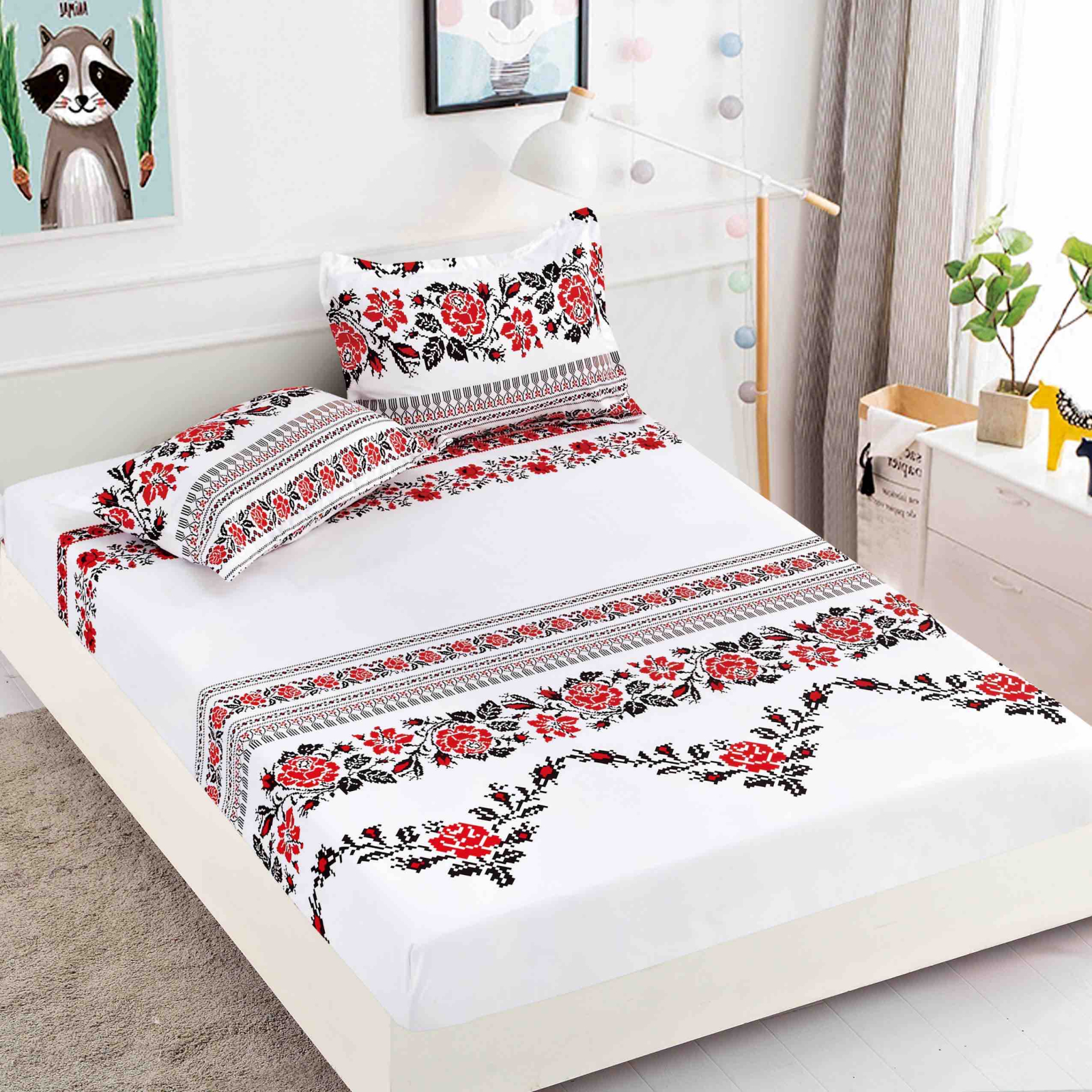 Husa pentru Pat Dublu cu Elastic + 2 Fete de Perna, Finet Premium
