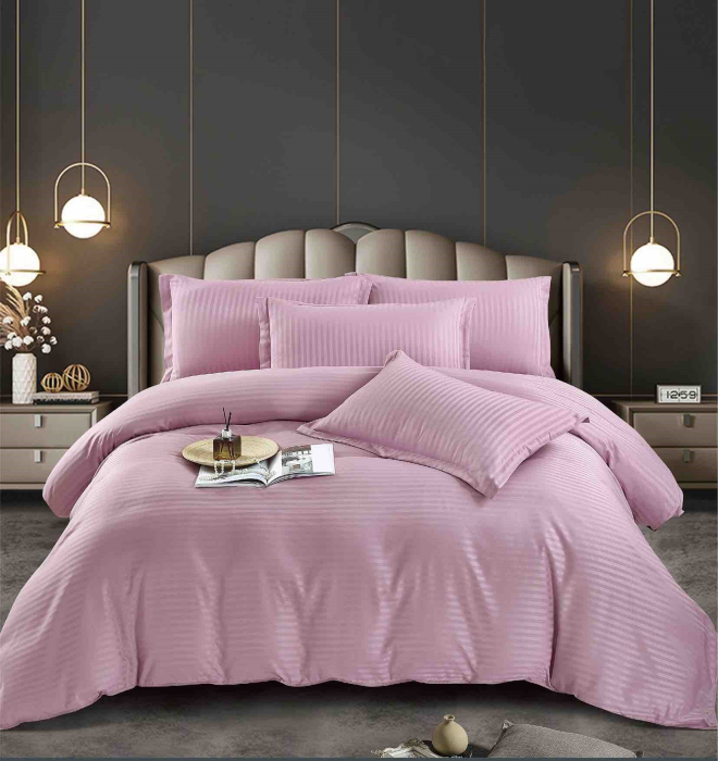 Lenjerie de Pat 1 Persoana 4 Piese din Damasc Finetat Roz