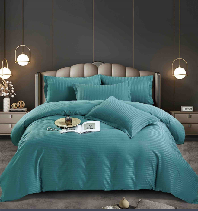Lenjerie de Pat 1 Persoana 4 Piese din Damasc Finetat Turcoaz