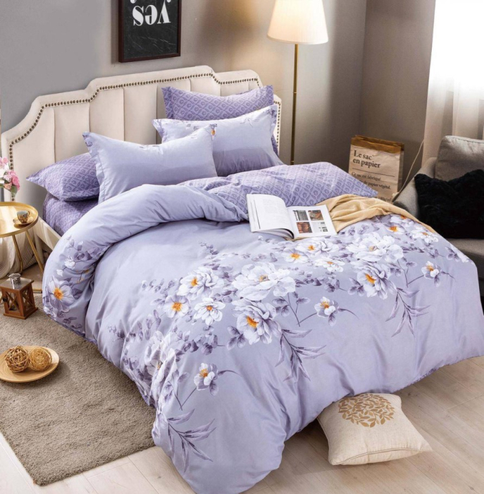 Lenjerie de pat dublu din bumbac finet, moale și plăcută la atingere, ideală pentru un somn confortabil.