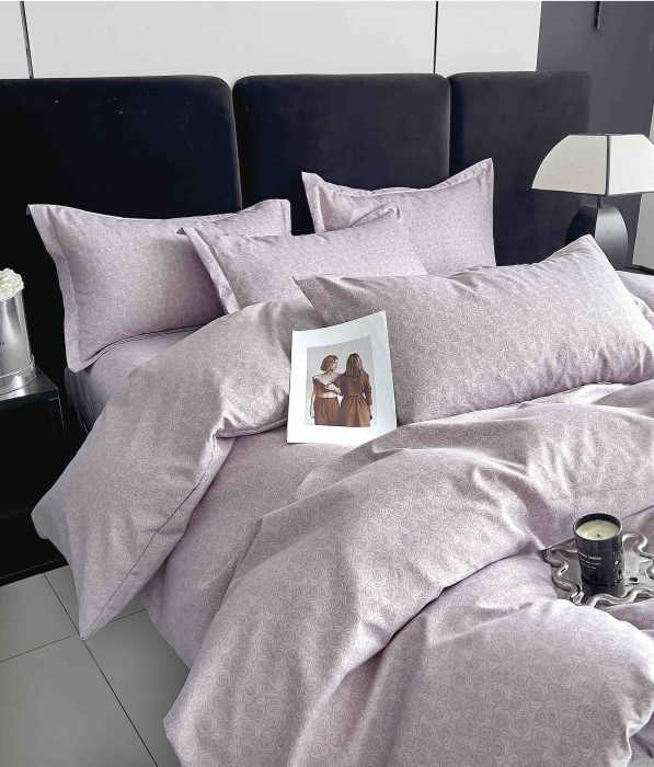 Lenjeria de pat este realizată din bumbac finet, o țesătură mai groasă, moale și plăcută la atingere, ideală pentru utilizare zilnică. Oferă confort sporit și rezistență în timp, menținându-și aspectul chiar și după multiple spălări.