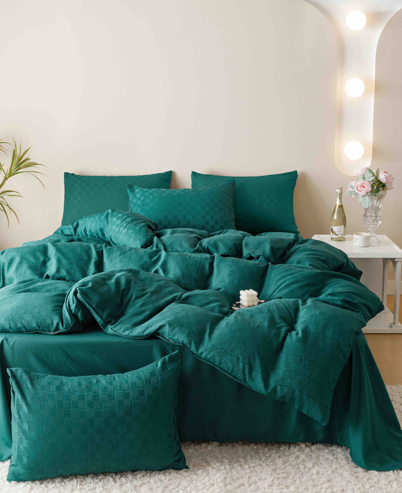 Lenjerie de Pat Dublu 6 Piese din Jacquard Finetat, Verde