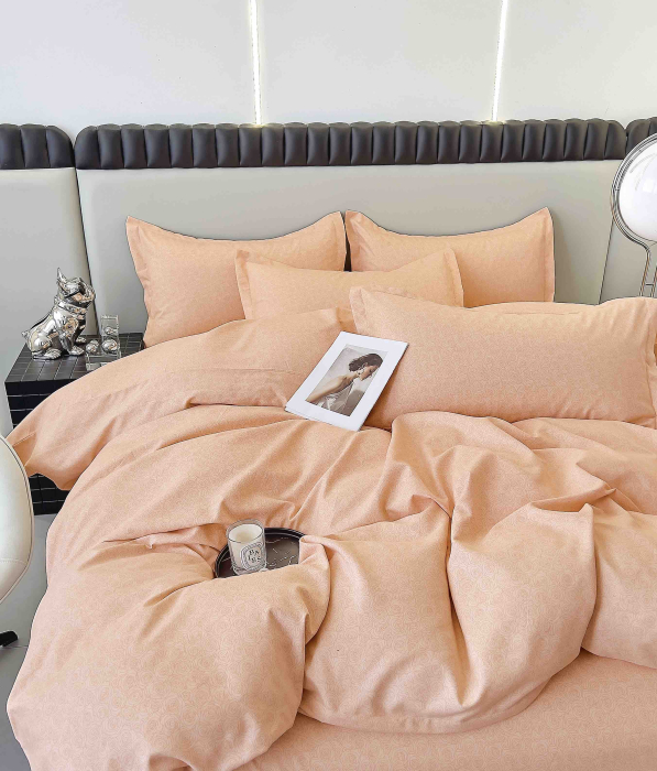 Lenjeria de pat este realizată din bumbac finet, o țesătură mai groasă, moale și plăcută la atingere, ideală pentru utilizare zilnică. Oferă confort sporit și rezistență în timp, menținându-și aspectul chiar și după multiple spălări.