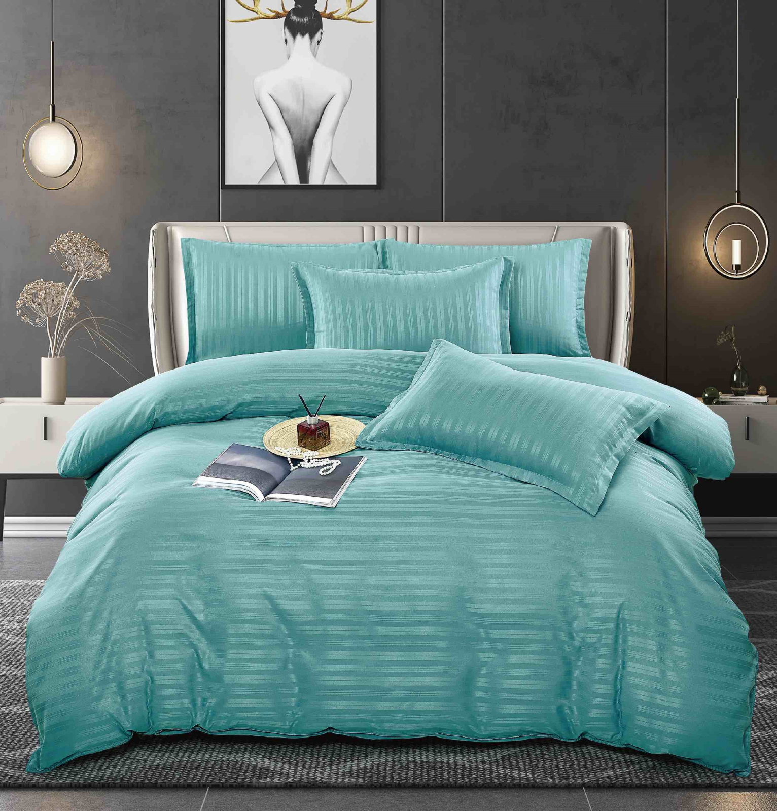 Lenjerie de Pat Dublu 6 Piese din Damasc Finetat, cu Cearceaf Normal, Set Elegant Tip Hotel Turcoaz